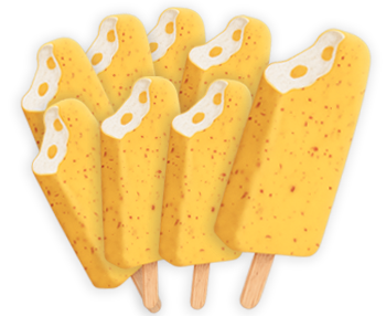 Vaniljajäätelöä, jossa on lemoncurd-täyte (8 %) ja sitruunakastiketta (17 %) sekä mansikkahiutaleita (0,1 %).